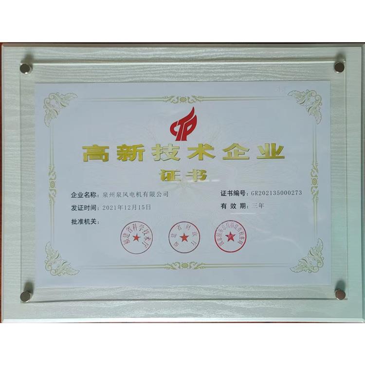 ??公司以建立現(xiàn)代化企業(yè)為目標,堅持“科技是首要生產力”,于2000年通過了ISO9001:2000國際質量體系認證、產品已獲得CCC強制性認證;美國UL、加拿大CUL、歐盟CE等安全認證。并獲得國家微電機產品檢測中心授予“行業(yè)監(jiān)督抽查合格單位”及“九五質量水平優(yōu)秀單位”,“泉風”牌風機被中國技術協(xié)會確定為 “風機行業(yè)質量十佳放心品牌”、“中國軸流風機十佳名優(yōu)品牌”。“泉風”牌產品已通過福建省新產品鑒定并獲得“福建省科技成果獎”、“省級優(yōu)秀新產品獎”、“省級科技進步獎”。 2006年度被福建省確認為“福建省高新技術企業(yè)”、“科技進步先進企業(yè)、“福建知名科技企業(yè)”。 “泉風”牌商標被評為“泉州市知名商標”。 2009年“泉風”牌商標被評為“福建省著名商標”。